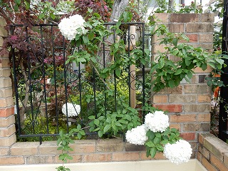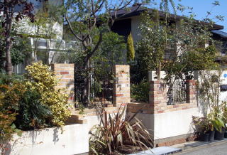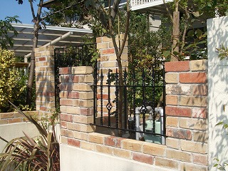 | レンガで立ち上げた ロートアイアンフェンス |