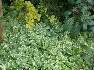 | キングサリ ボッシー | ノリウツギ&アオキ&ギボウシ |